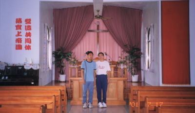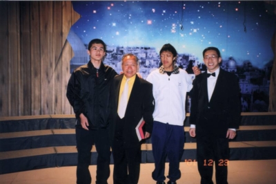 盲生,靈糧堂周神助牧師與魏連嶽弟兄共同合影
